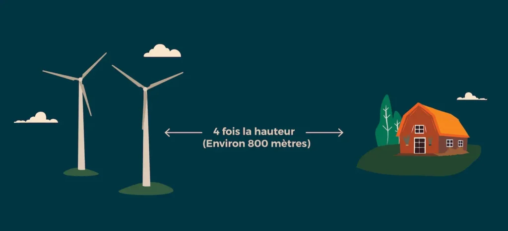Le règlement de contrôle intérimaire de la MRC de Mékinac exige une distance minimale de 4 fois la hauteur de l'éolienne entre celle-ci et les habitations et commerces.